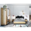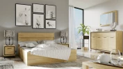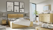 Úložných priestorov by v spálni nemalo byť mnoho, aby sa zachovala vzdušnosť izby, ale pokiaľ napríklad dom alebo byt nedisponuje samostatnou šatňou, prípadne komorou, je nevyhnutné umiestniť tu šatníkové skrine, ktoré pravdepodobne zaberú najväčšiu časť priestoru miestnosti. Šatníkovú skriňu si je možné dať vyrobiť na mieru, aby presne kopírovala vyhradený priestor na ukladanie oblečenia a nielen toho. Odporúča sa doplniť ju posuvnými dverami, ktoré nezaberú žiadne miesto pri otváraní na rozdiel od klasických. Na dvere sa často upevňuje zrkadlo, vďaka ktorému sa opticky zväčší priestor a nie je ďalej nutné si obstarávať samostatne stojace. Vnútorné vybavenie skrine je možné zostaviť podľa prianí majiteľov – na výber sú klasické police, posuvné rošty, zásuvky, drôtené systémy, tyče pevné a teleskopické. Okrem šatníkových skríň sú v spálni potrebné nočné stolíky. Nočný stolík by mal mať každý z partnerov, väčšinou sa kupuje stolík samostatne stojaci, ale nie je výnimkou aj pripevnený priamo na boku či čele postele. Každý stolík by mal byť doplnený lampou, v najlepšom prípade takou, ktorá a môže nahýbať a výškovo posúvať tak, aby perfektne slúžila pri čítaní v posteli. Ďalším doplnkom z úložných priestorov sú komody, ktoré môžete využiť na periny – tzv. „perináče“ alebo ako miesto na ukladanie čistej posteľnej bielizne.