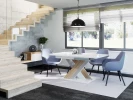 Pokiaľ poznáte počet a veľkosť jednotlivých zón a viete, či usporiadať kuchyňu pre pravú či ľavú ruku, môžete sa potom hrať s nábytkom ako deti s Legom. Pravda, najprv to skúste na papieri, je to jednoduchšie, než prerábať elektrické rozvody, vodu, odpad a premontovať jednotlivé skrinky. Pre pravákov platí, že úplne vľavo by mala byť zóna zásob, teda chladnička a potravinová skriňa, voľná pracovná plocha, ďalej zóna umývania, kam patrí drez a umývačka. Opäť počítajte s voľnou plochou, na ktorú nadväzuje zóna varenia – sporák alebo varná doska a všetky druhy rúr - a zase voľná odkladacia plocha. Spodné skrinky pod pracovnou doskou spravidla slúžia ako zóna na ukladanie, sem patria hrnce, kuchynské náradie, taniere, príbory a všetko ostatné. Ale pozor, vyberajte si miesto podľa použitia. Napríklad ostré nože by nemali byť medzi príbormi, viac ich potrebujete pri varení. Pamätajte tiež na to, že aspoň jedna z pracovných plôch by mala mať šírku minimálne 60 cm, pokiaľ si nemôžete dohodnúť viac, tento rozmer prisúdime miestu medzi drezom a varnou doskou. Práve tu sa bude odohrávať väčšina prác, pretože tu máme obe dôležité kuchynské centrá pekne po ruke.