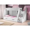 Pod ložnou plochou sa môže nachádzať aj skriňa a prostor na učenie, ktorý zahŕňa nielen stôl, ale aj police či zásuvku. Ložná plocha sa obvykle nachádza vo výške 80 až 100 cm a do postele sa deti dostávajú po rebríku alebo po schodíkoch. Preto je vhodná predovšetkým pre staršie deti.