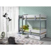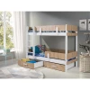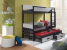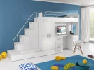 Ideálne riešenie pre malé izby je vyvýšená detská posteľ. Poznáte ju podľa komplexnej konštrukcie, ktorá zahŕňa ložnú plochu a úložný priestor s písacím stolom. Výhodou sú kompaktné rozmery, kedy spoločne s posteľou získate vlastne aj komodu a stôl na písanie.