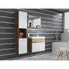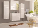 Klasická farba, s ktorou nič nepokazíte. Aby biele steny nepôsobili príliš jednoducho a bez nápadu, použite rôzne štruktúry. Originálnym a sofistikovaným riešením sú rôzne tvary dlaždíc, ktoré môžete použiť na podlahe aj v sprche. Útulnosť a teplo kúpeľni prepožičiate akcentmi svetlého dreva na zostave nábytku do kúpeľne. Ideálne sú v tomto prípade zostavy v dekóre dubu sanremo a sonoma. Hravú farebnosť do miestnosti vnesiete kúpeľňovými doplnkami v žltej, ružovej alebo zelenej farbe.