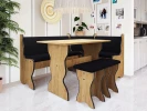 - Proporcie: Nábytok by mal byť v súlade s rozmermi izby. Pokiaľ je izba úzka a dlhá, je lepšie voliť nábytok s podobnými proporciami, ktorý nebude pôsobiť príliš masívne alebo nepatrične. Napríklad namiesto veľkej štvorcovej jedálenskej súpravy, zvoľte úzky a dlhý stôl s lavicami alebo stoličkami, ktoré sa dajú zasunúť pod stôl.