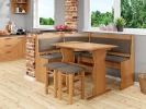 Lavice do kuchyne v charakteristickom retro dizajne si obľúbili výraznou kresbou jadrového červeného buku, svetlého buku, tmavého dubu alebo orecha. Povrch je ošetrený len olejovaním alebo voskovaním. Jedálenské stoly vyniknú výraznou konštrukciou a hrúbkou použitého materiálu. Ich línie sú však strohé. Oblým tvarom sa vyhýbajú.