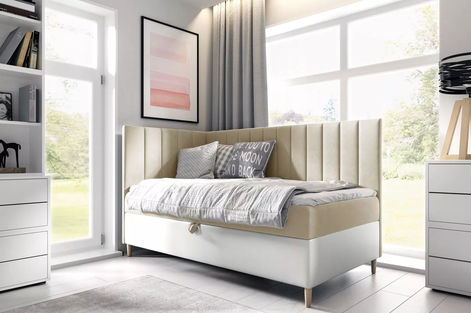 Kontinentálna posteľ 80x200 MIREN 3 - béžová / biela, otváranie z boku + topper ZDARMA