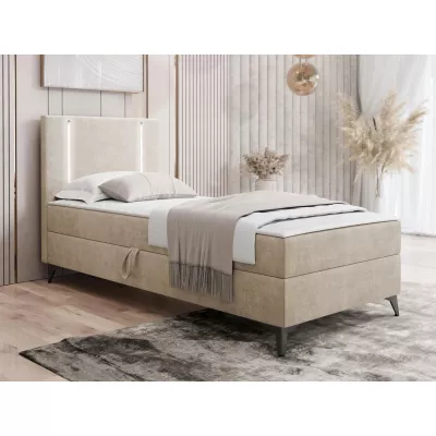 Americká jednolôžková posteľ 90x200 FIDOREA - svetlá béžová, ľavé prevedenie + topper ZDARMA
