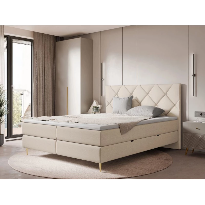 Kontinentálna dvojlôžková posteľ 180x200 ARMADO - béžová / zlaté nôžky