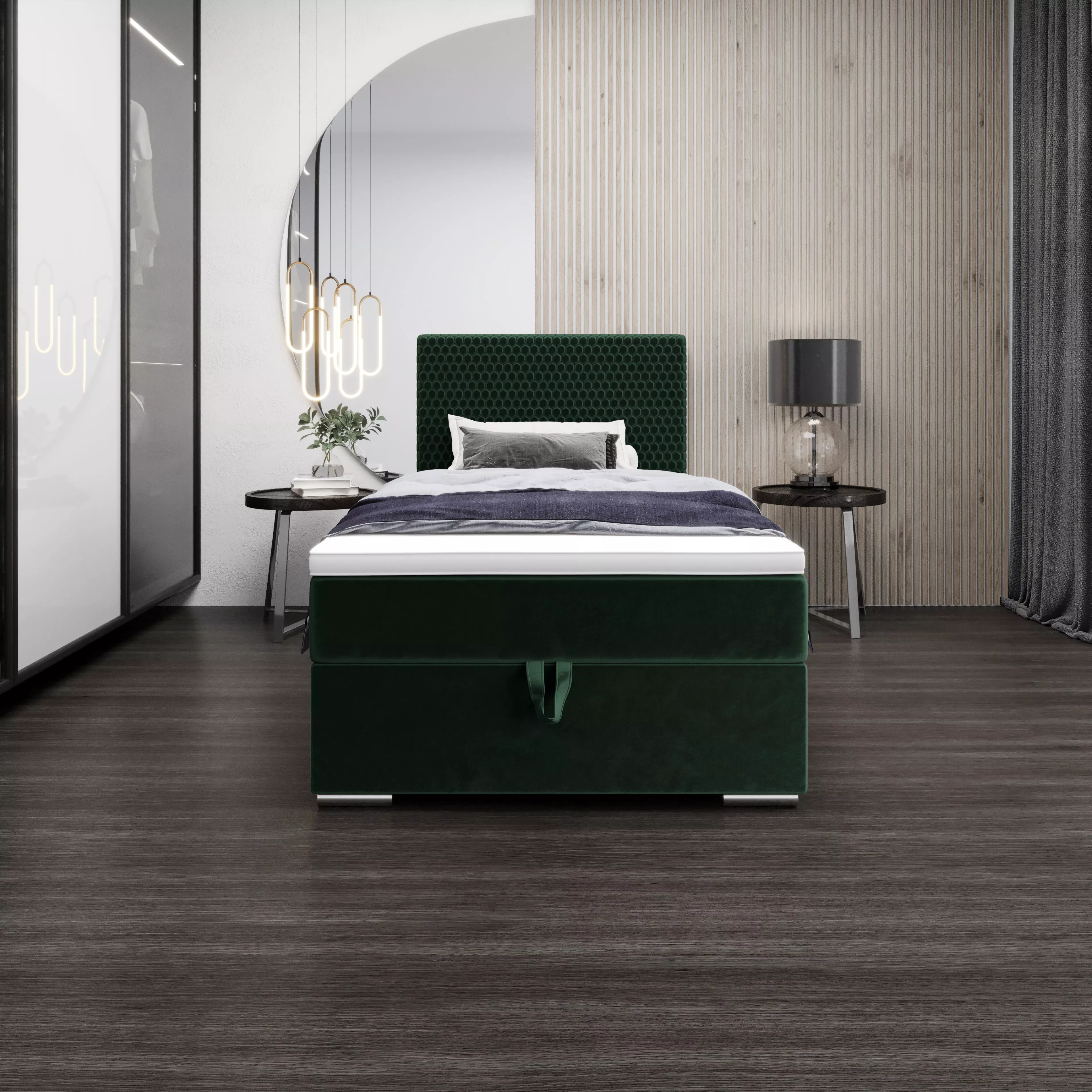 Jednolôžková čalúnená posteľ 90x200 HENIO 1 - fľaškovo zelená