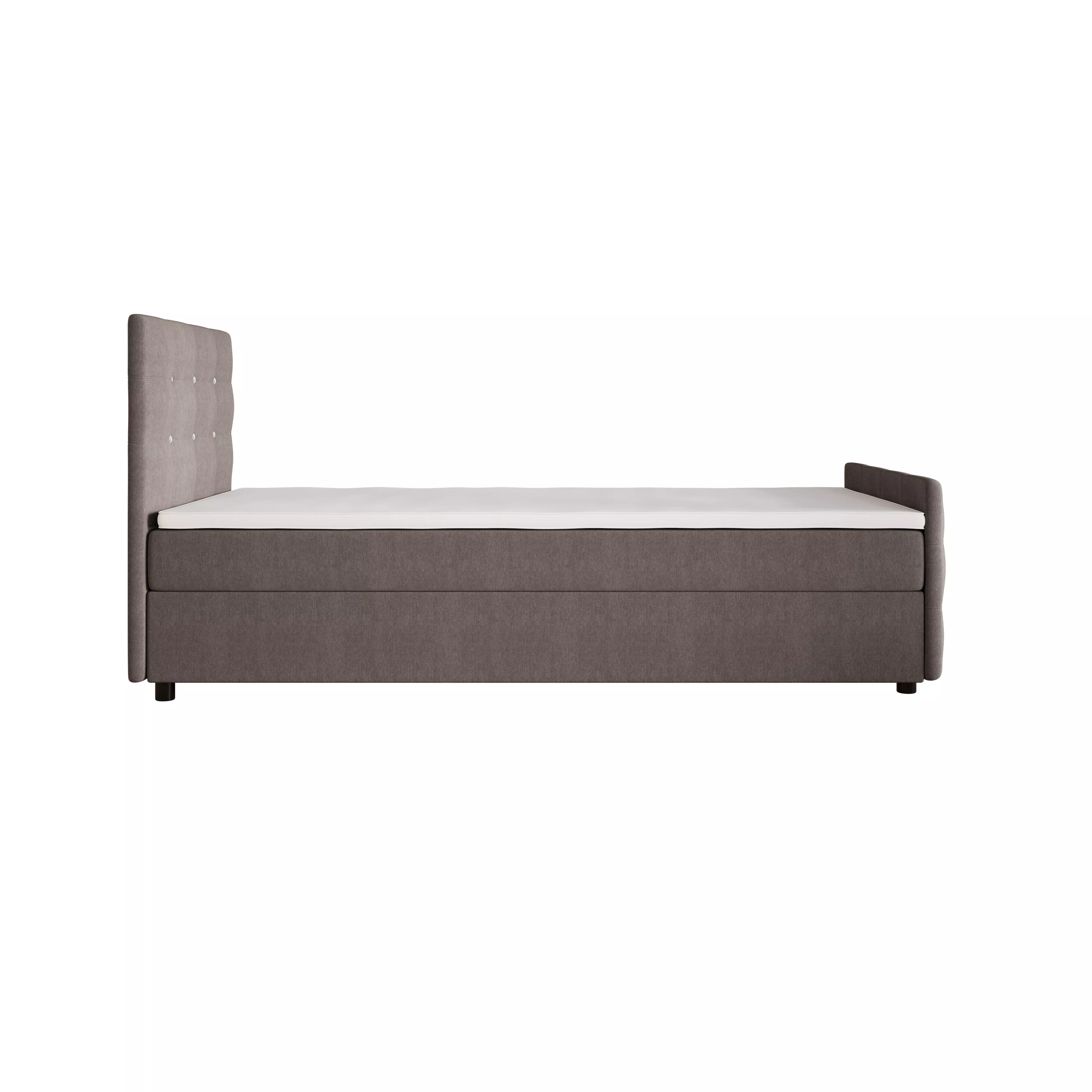 Jednolôžková posteľ 120x200 KAUR s úložným priestorom zaujme svojím prešívaným čelom s gombíkmi. Praktický úložný priestor na uloženie lôžkovín alebo sezónneho oblečenia spríjemní každodenné používanie.
