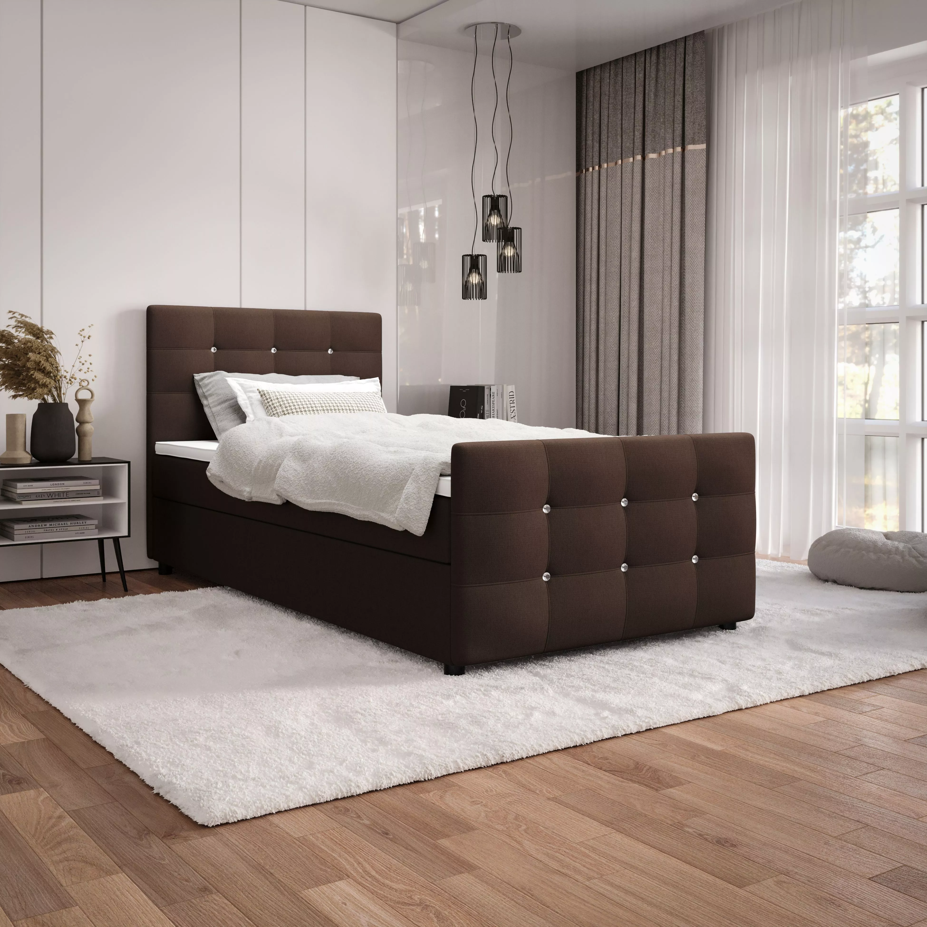 Jednolôžková posteľ 90x200 KAUR COMFORT s úložným priestorom - tmavo hnedá