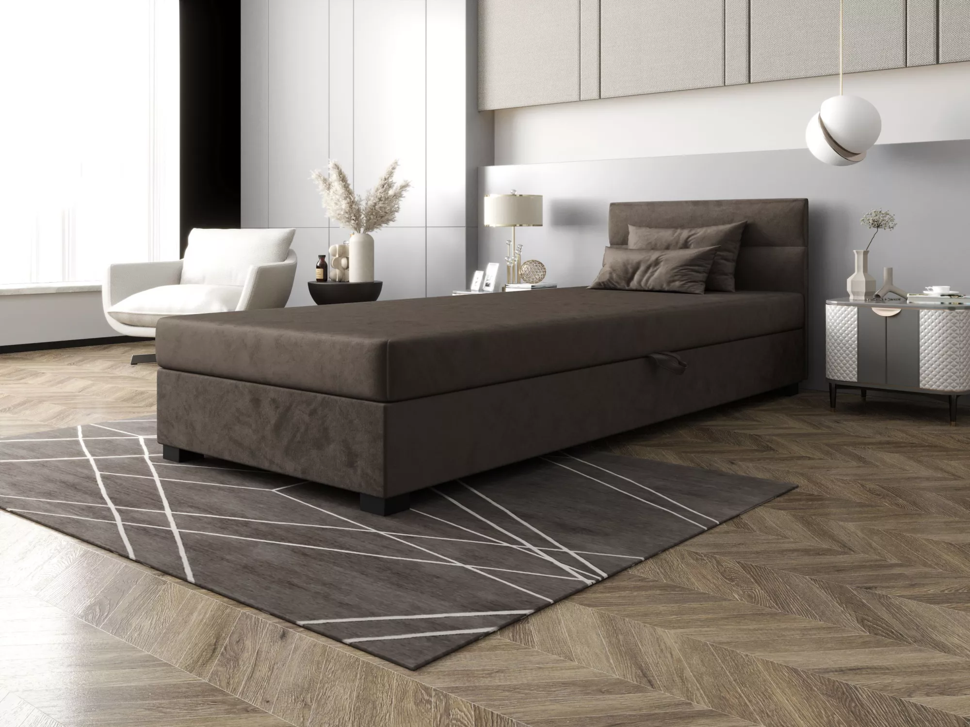 Jednolôžková čalúnená posteľ 110x195 NALINDA 2 - tmavo hnedá