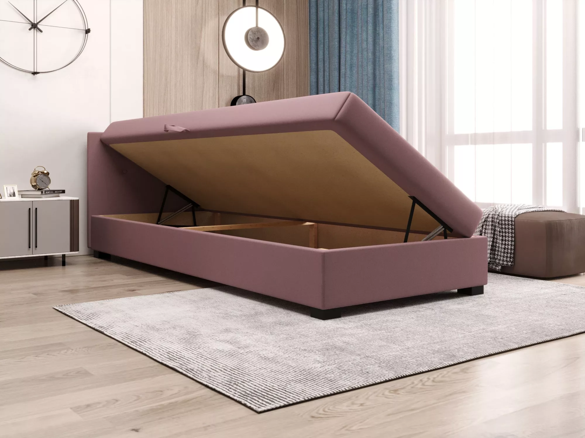 Súčasťou postele je zabudovaný matrac a úložný priestor.