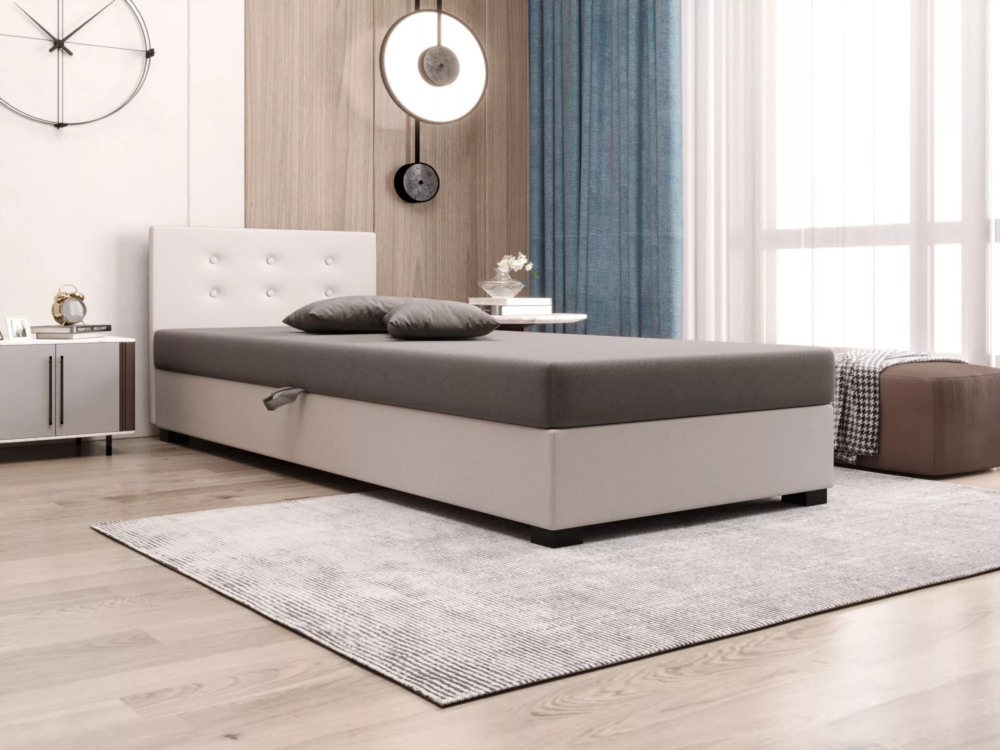 Jednolôžková posteľ 80x195 AJKA 2 - svetlo šedá / ecru
