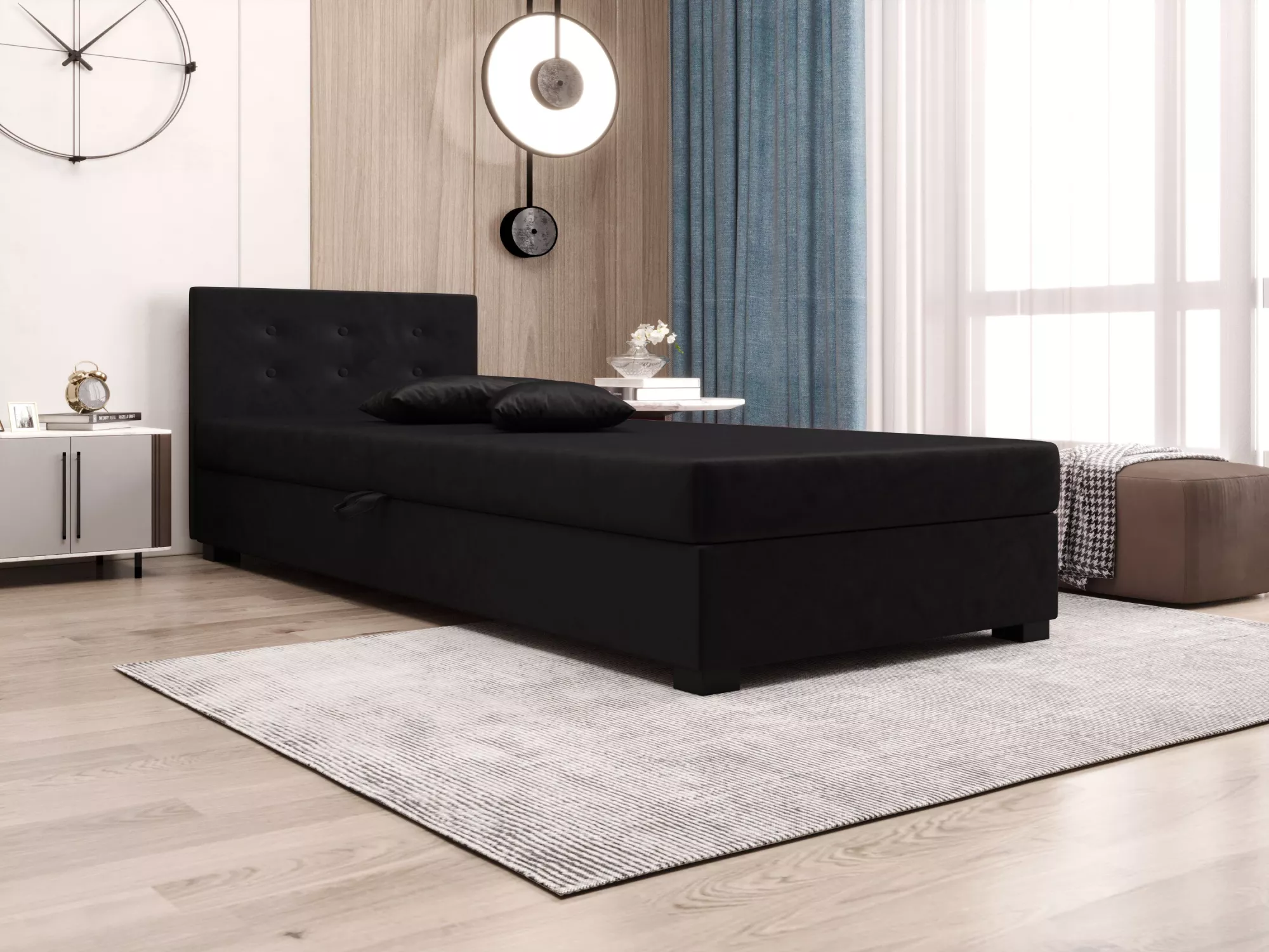 Jednolôžková posteľ 80x195 AJKA 2 na prvý pohľad zaujme svojím vysokým prešívaným čelom, ktoré zabraňuje poškriabaniu a zašpineniu steny. Posteľ skvele zapadne do každej študentskej izby. Nechýba ani praktický úložný priestor na uloženie lôžkovín alebo sezónneho oblečenia.