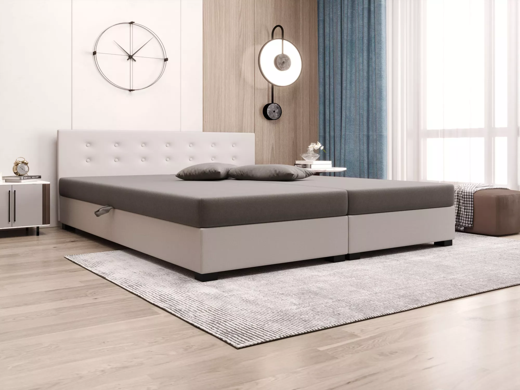 Manželská posteľ 180x200 AJKA DOUBLE 2 - svetlo šedá / ecru
