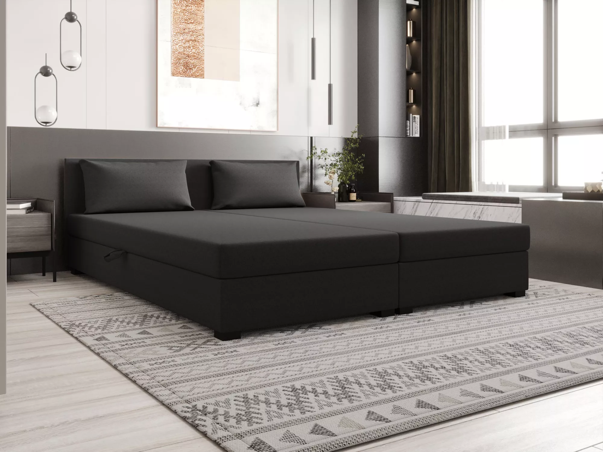 Manželská posteľ 180x200 ZAJDA DOUBLE 2 s úložným priestorom svojím jednoduchým minimalistickým dizajnom zapadne do každej spálne. Vysoké čalúnené čelo zabráni poškriabaniu a zašpineniu steny. Príjemná poťahová látka zvýši komfort používania.