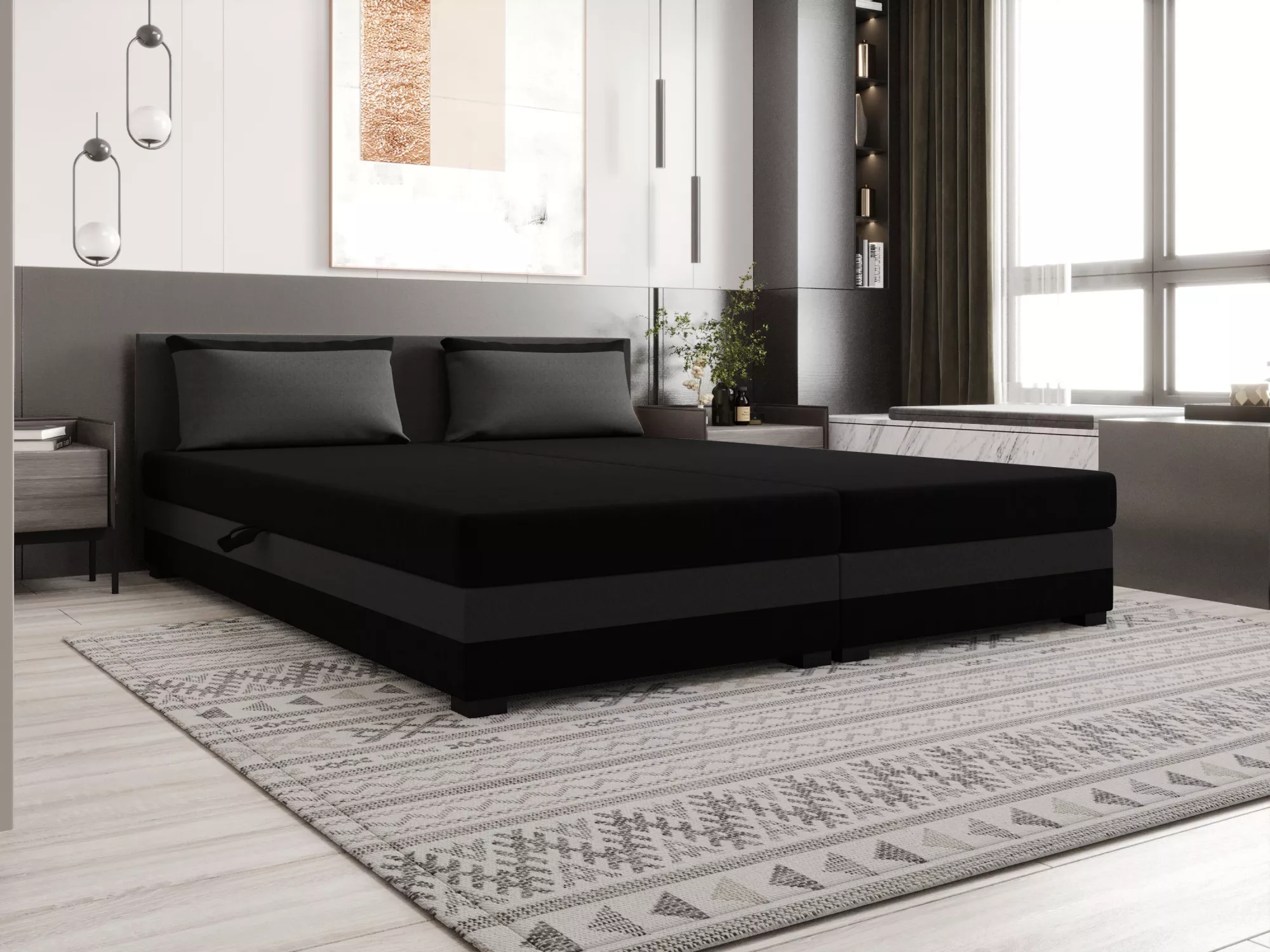 Manželská posteľ 180x200 ZAJDA DOUBLE 2 s úložným priestorom - čierna / šedá