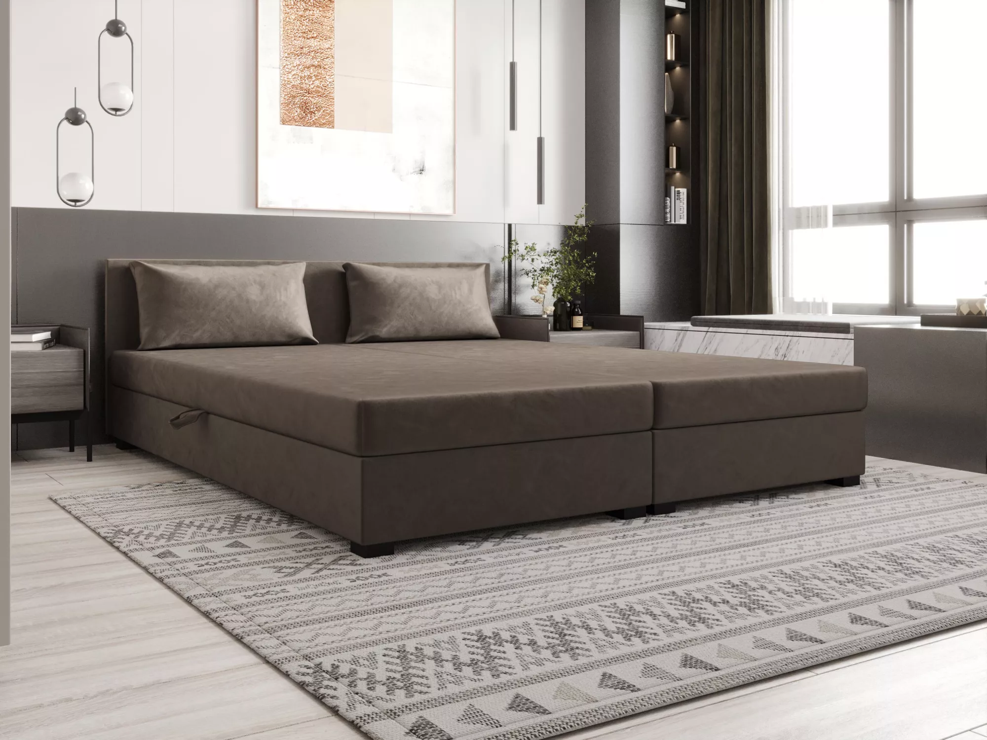 Manželská posteľ 180x200 ZAJDA DOUBLE 2 s úložným priestorom - tmavo hnedá