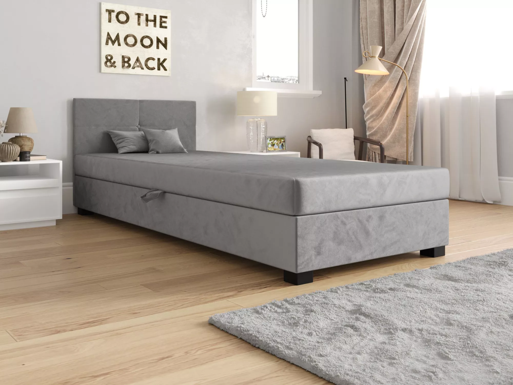 Jednolôžková čalúnená posteľ 100x195 LOCIKA 1 vyniká pohodlným matracom, ktorý spríjemní každú chvíľu odpočinku. Posteľ disponuje praktickým úložným priestorom na uloženie sezónneho oblečenia alebo lôžkovín. Príjemná poťahová látka zvyšuje komfort používania.
