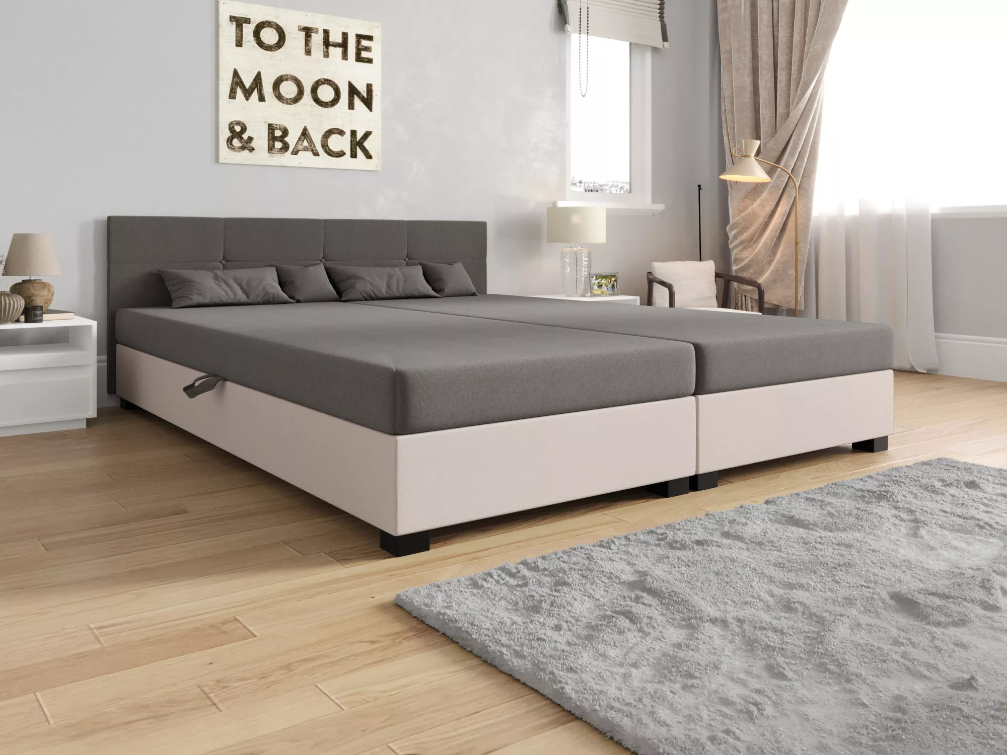 Manželská posteľ 180x200 LOCIKA DOUBLE 1 - svetlo šedá / ecru