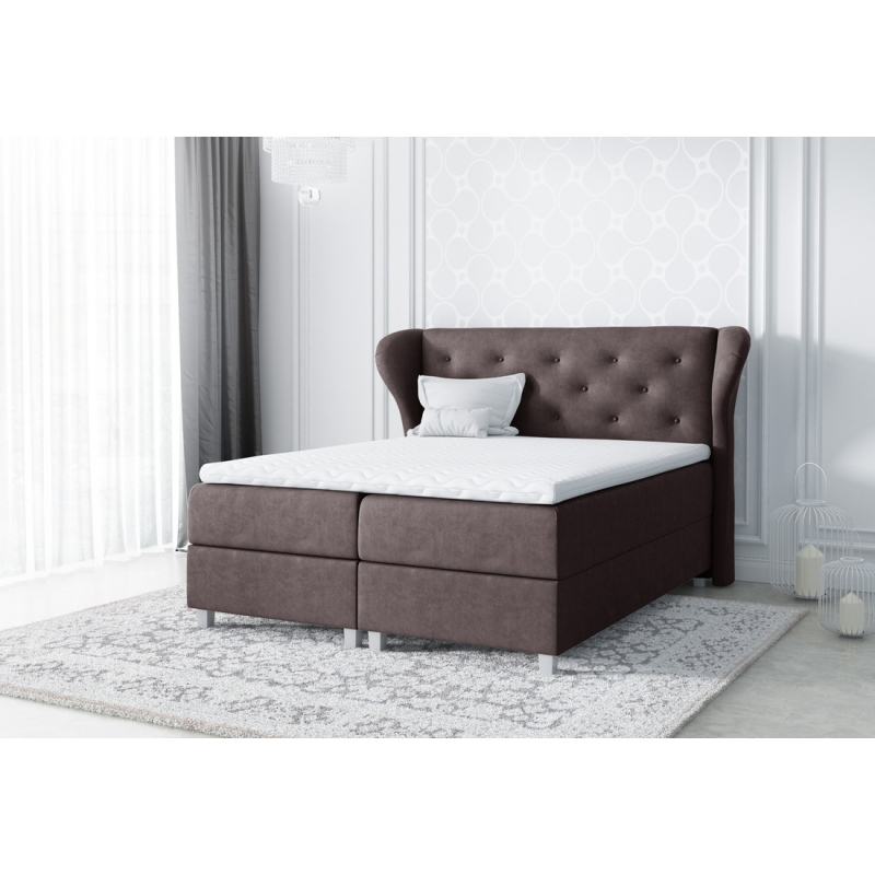 Čalúnená manželská posteľ Eveli hnedá 180 + Topper zdarma