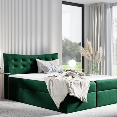 Čalúnená posteľ HILA - 120x200, zelená + topper ZDARMA