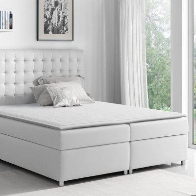 Hotelová manželská posteľ 180x200 SARITA - biela ekokoža + topper ZDARMA