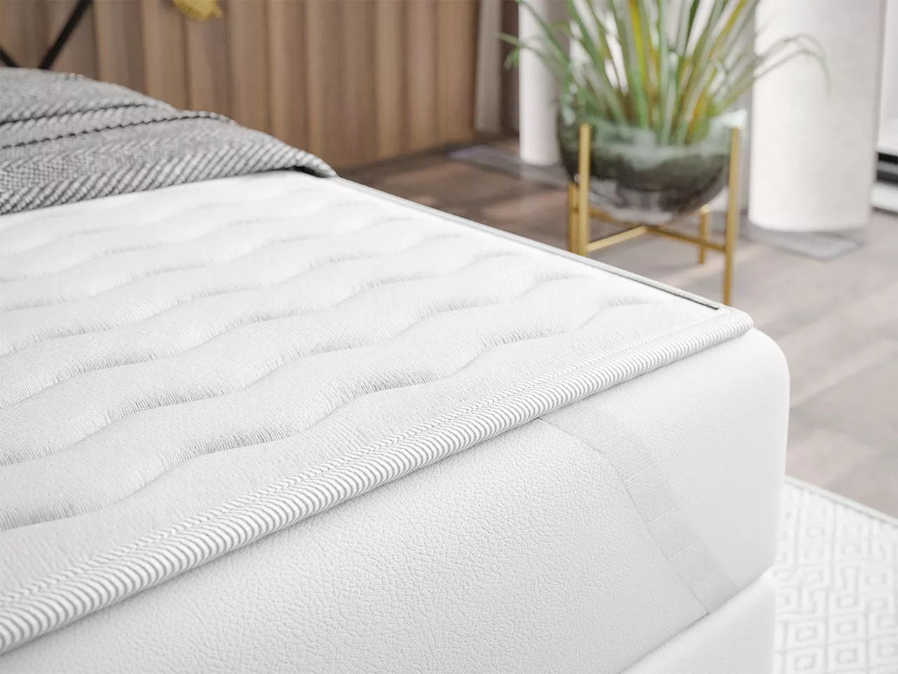 Hotelová manželská posteľ ROSENDO so spacou plochou 140x200 cm je vyrobená z kvalitných komponentov, ktoré sú zodpovedné za zdravý a pohodlný spánok. Má charakteristickú opierku hlavy, ktorá dodáva interiéru jedinečný design. Posteľ je vybavená dvojkomorovým úložným priestorom.