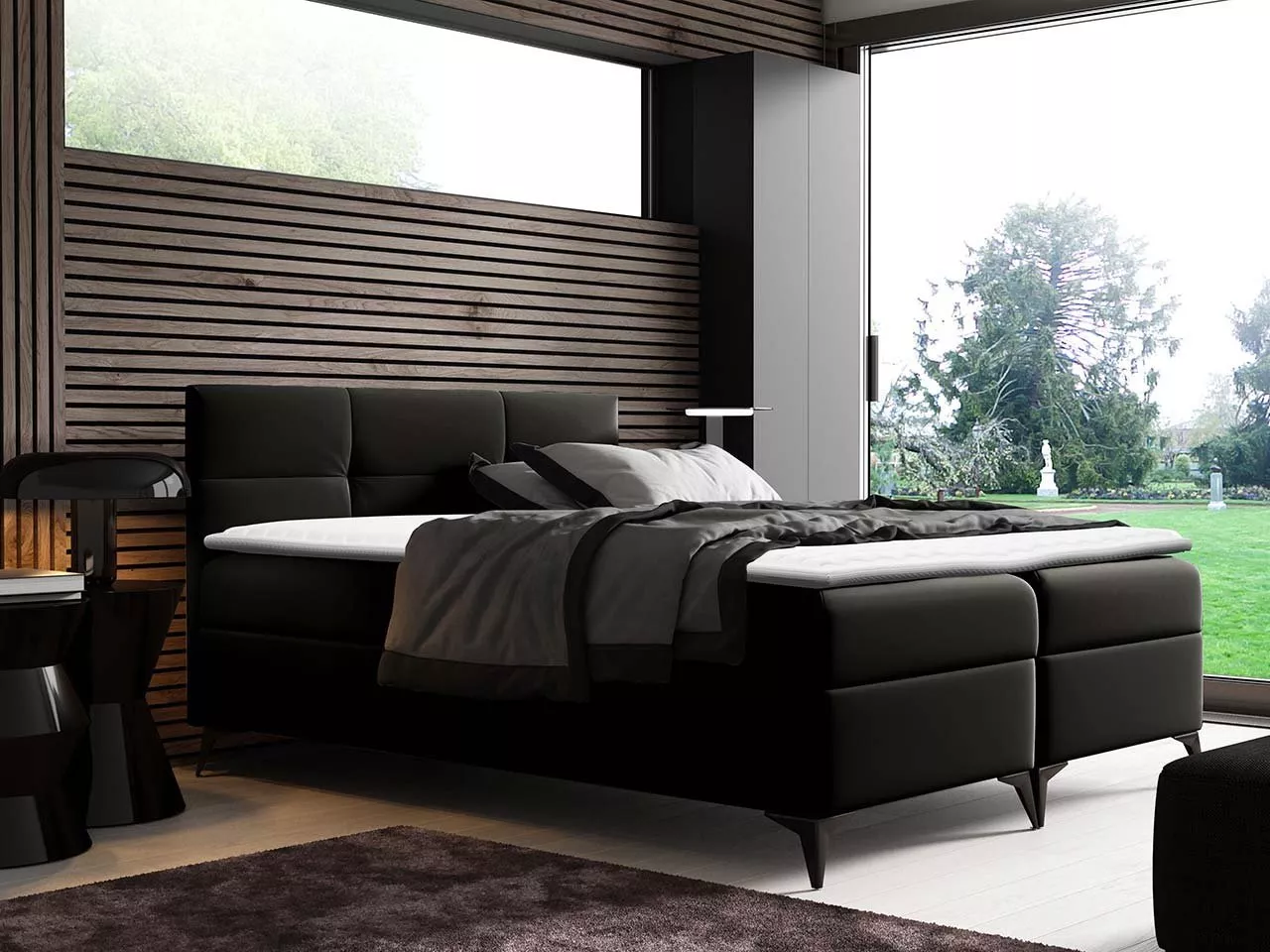 Americká manželská posteľ 140x200 MERCHE - čierna ekokoža + topper ZDARMA