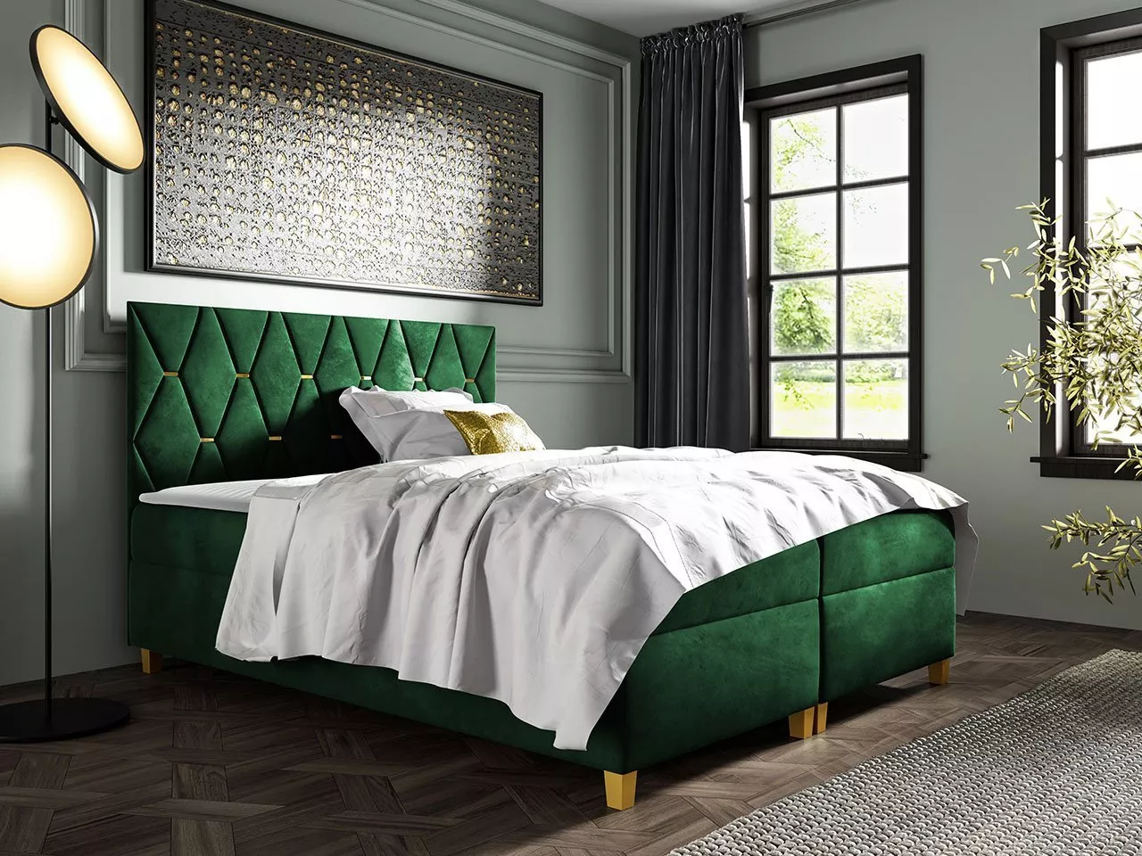 Boxspringová dvojlôžková posteľ 160x200 LUELA - zelená + topper ZDARMA