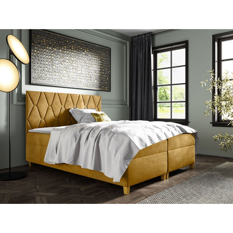 Boxspringová dvojlôžková posteľ 160x200 LUELA - horčicová + topper ZDARMA