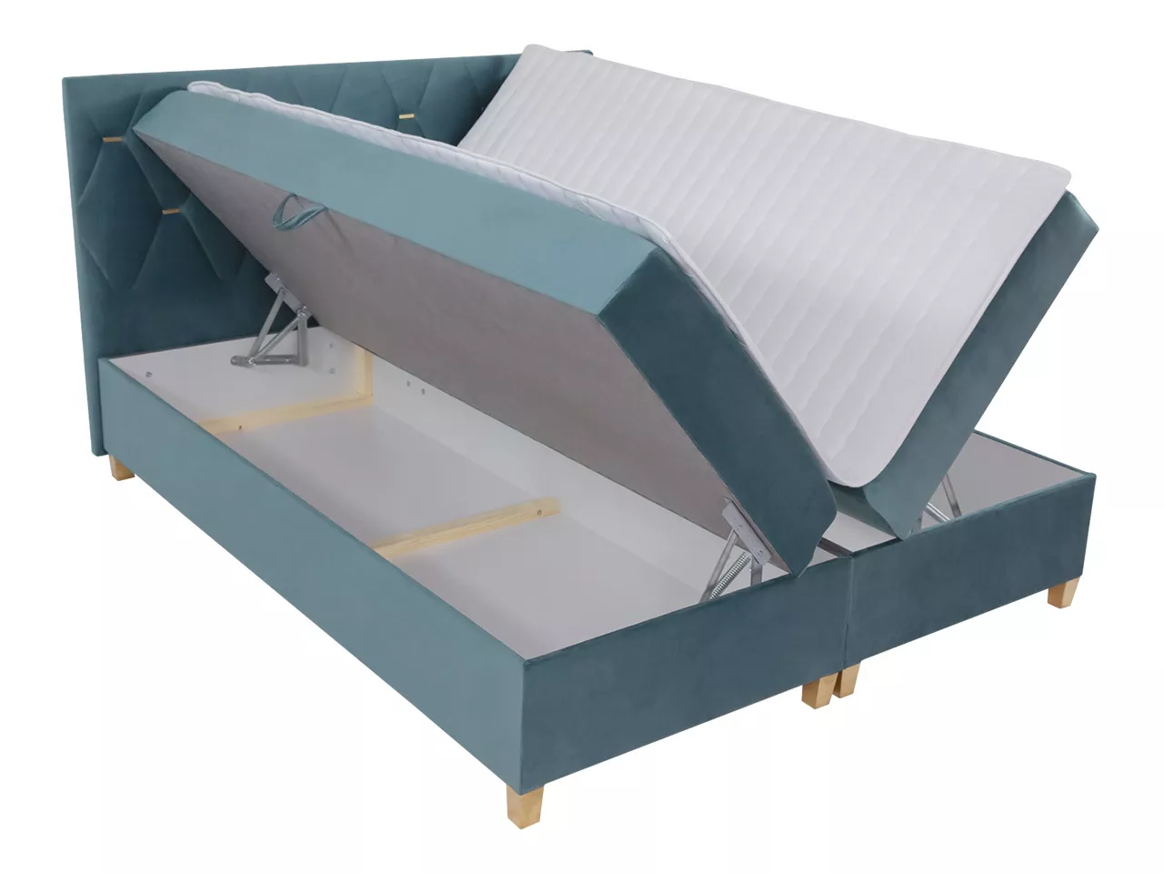 Hľadáte vysoko kvalitnú a pohodlnú posteľ? Boxspringová dvojlôžková posteľ LUELA spĺňa všetky potrebné podmienky pre zdravý spánok. Vstavaný matrac zodpovedá za správnu podporu chrbtice počas spánku, pričom vrchný penový topper zvyšuje pocit pohodlia. Posteľ so spacou plochou 180x200 cm sa vyznačuje priestranným a ľahko prístupným dvojkomorovým úložným priestorom.
