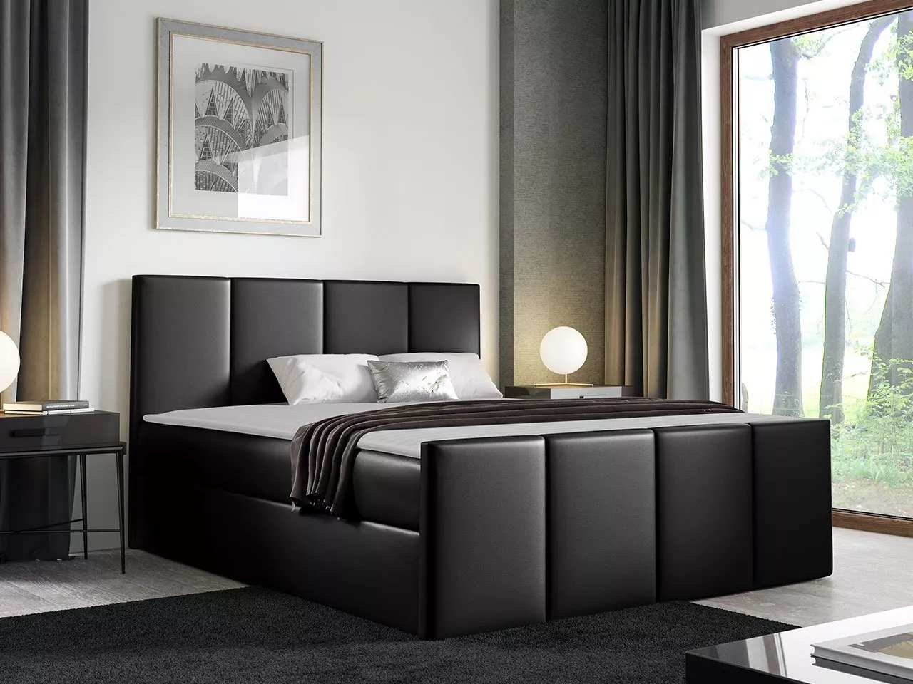 Hotelová manželská posteľ 160x200 MORALA - čierna ekokoža + topper ZDARMA