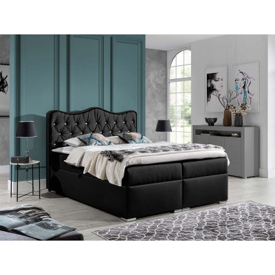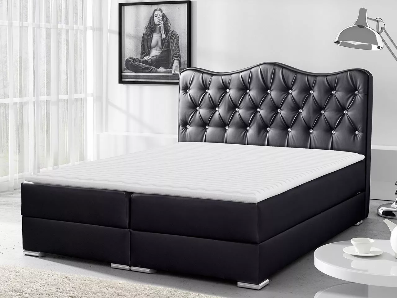 Kontinentálna manželská posteľ 180x200 TEJANA - čierna eko koža + topper ZDARMA