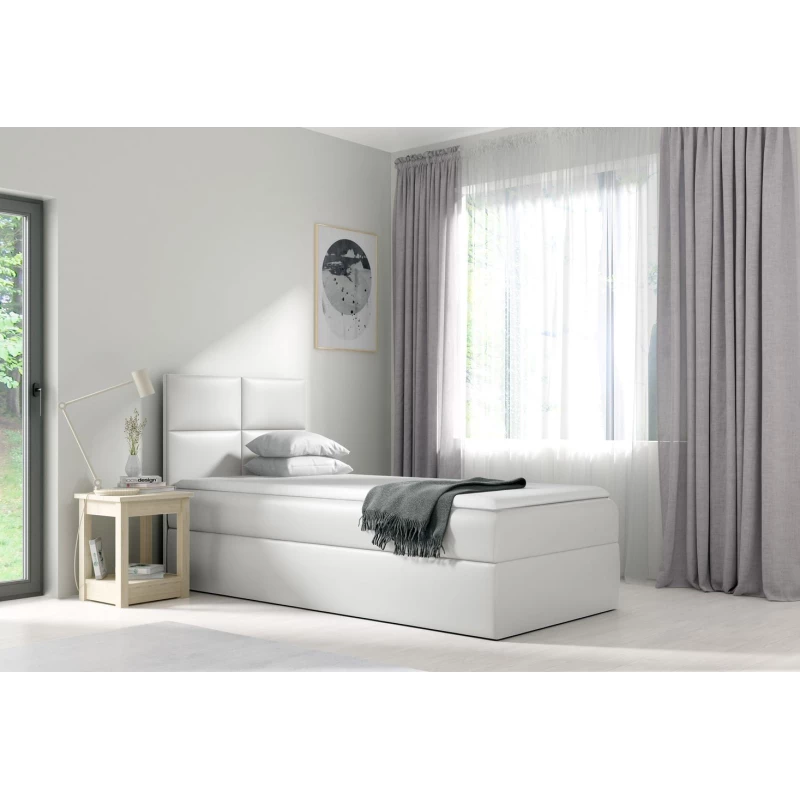 Čalúnená jednolôžková posteľ SONIA - 90x200, biela + topper ZDARMA