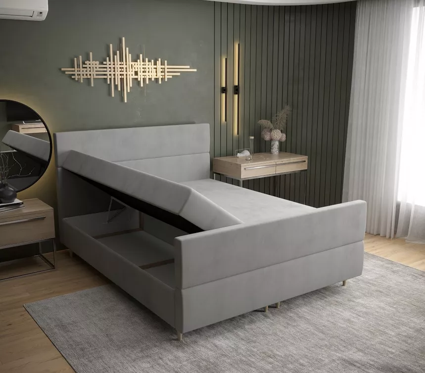 Boxspringová posteľ ANGELES PLUS COMFORT sa hodí do všetkých moderných spální. Čalúnené čelo zamedzí poškriabaniu a zašpineniu steny. Posteľ disponuje 2 úložnými priestormi, ktoré sú umiestnené pod vyklápacími roštami.
