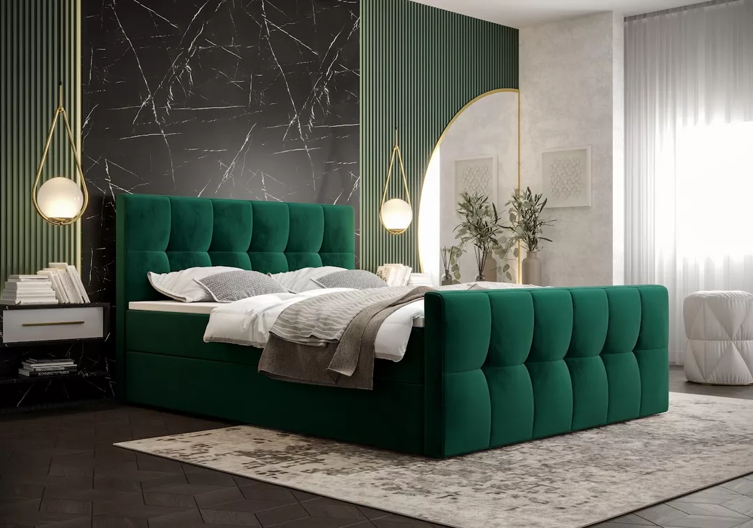 Boxspringová posteľ s úložným priestorom ELIONE - 200x200, zelená