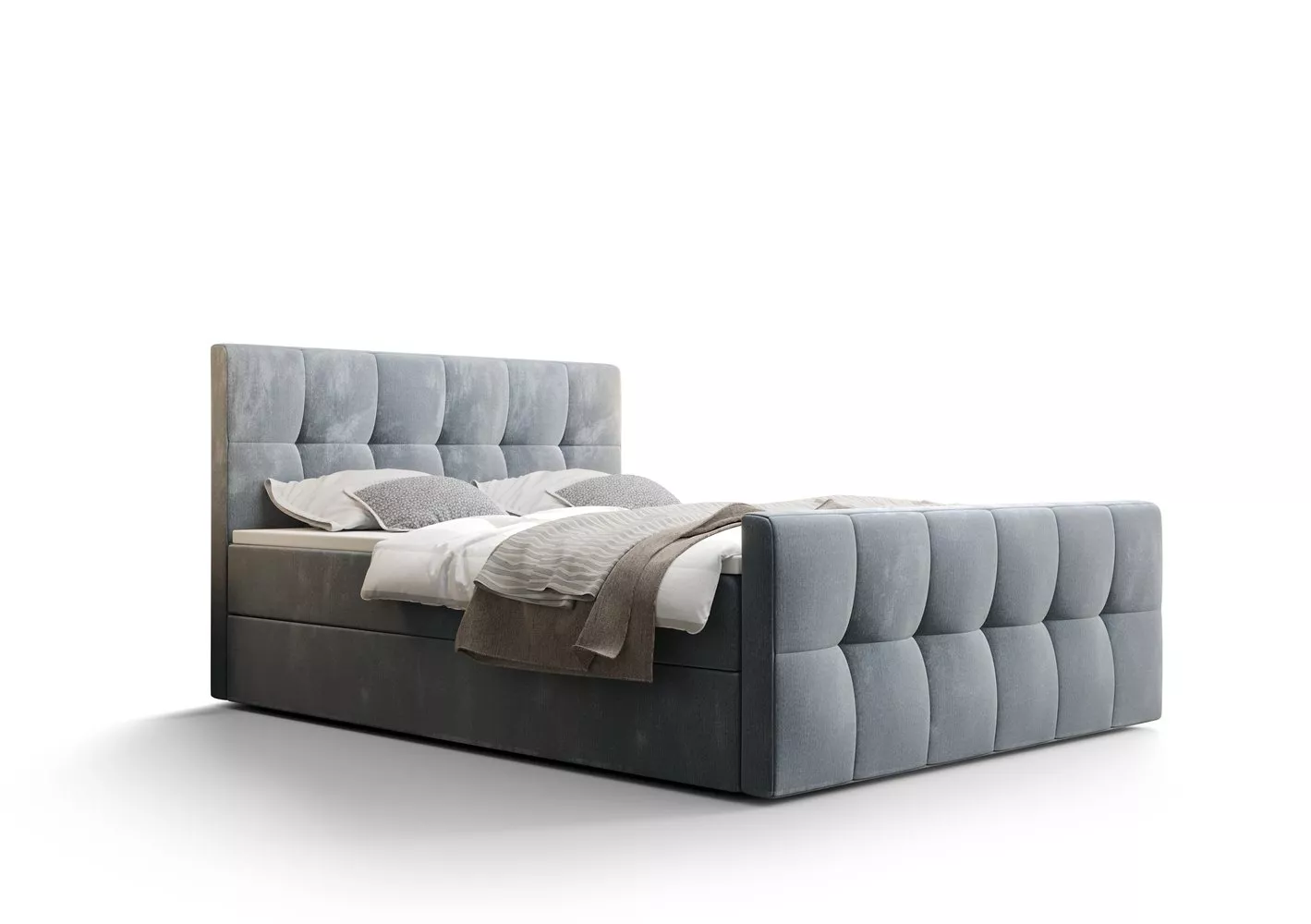 Elegantná manželská posteľ boxspring ELIONE je ideálnou voľbou do vašej spálne. Vďaka matracu z pružnej peny budete mať pokojný a pohodlný spánok a zároveň čelo postele s krásnym prešívaným vzorovaným prináša komfort pri každodennej relaxácii.