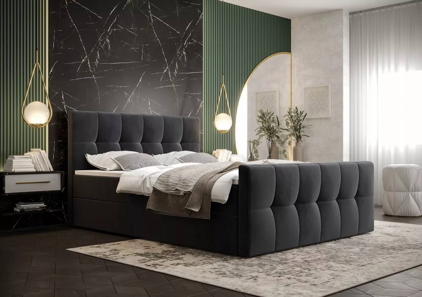 Elegantná manželská posteľ ELIONE - 160x200, tmavo šedá