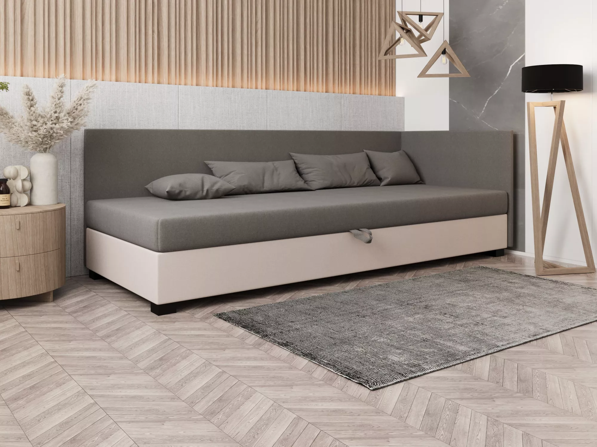 Súčasťou postele je zabudovaný matrac a úložný priestor.
