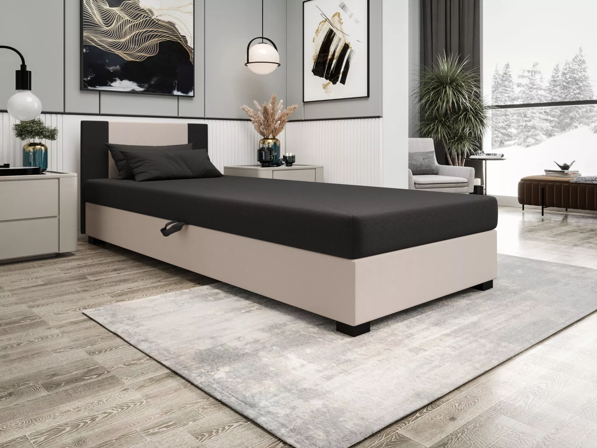 Čalúnená jednolôžková posteľ 100x195 ARIADNA 1 disponuje pohodlným matracom, ktorý spríjemní každú chvíľu odpočinku. Posteľ ponúka praktický úložný priestor na uloženie sezónneho oblečenia alebo posteľnej bielizne. Príjemná poťahová látka zvýši komfort používania.