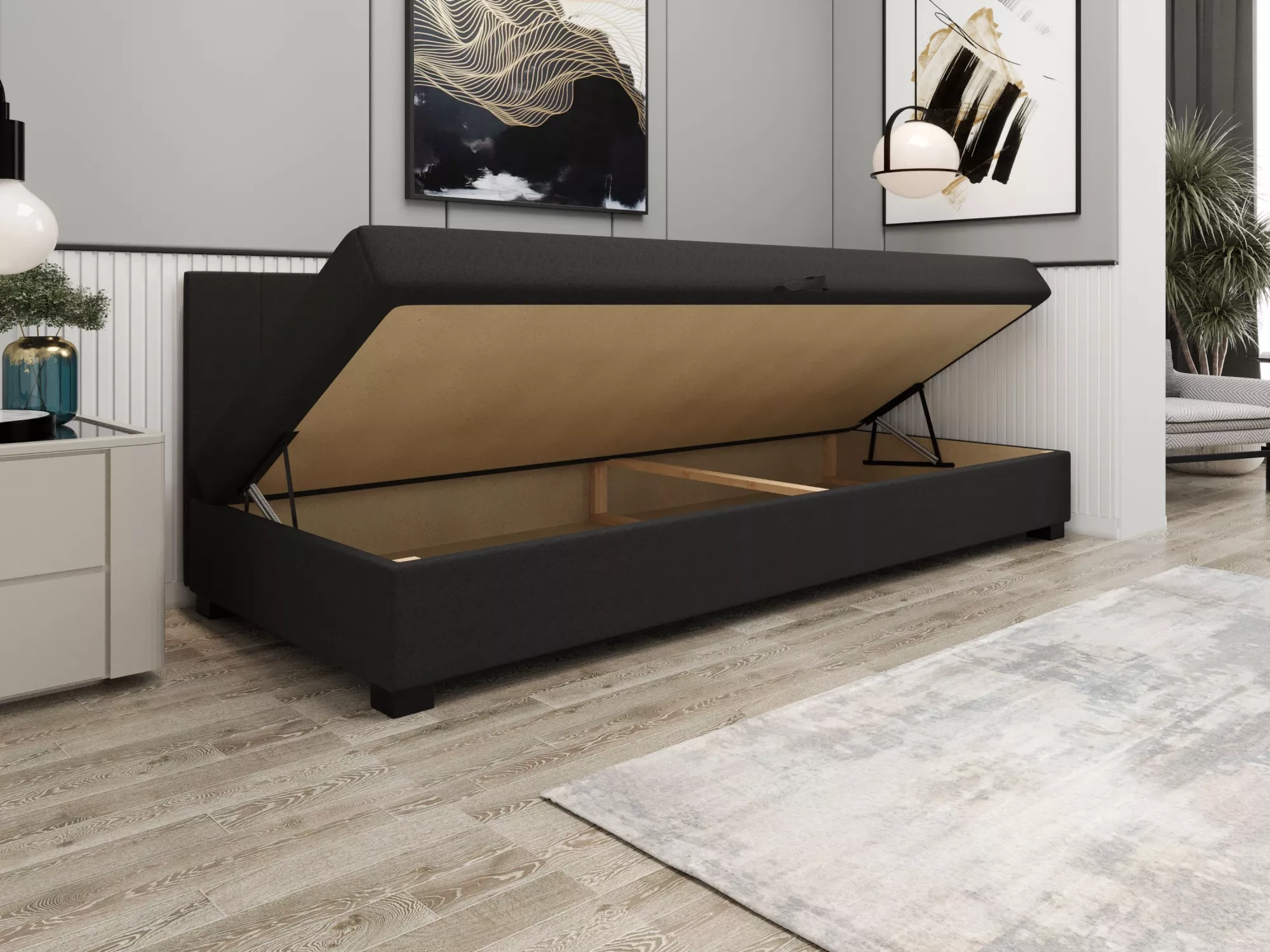 Čalúnená jednolôžková posteľ 100x195 ARIADNA BIZ 1 disponuje pohodlným matracom, ktorý spríjemní každú chvíľu odpočinku. Posteľ ponúka praktický úložný priestor na uloženie sezónneho oblečenia alebo posteľnej bielizne. Príjemná poťahová látka zvýši komfort používania.