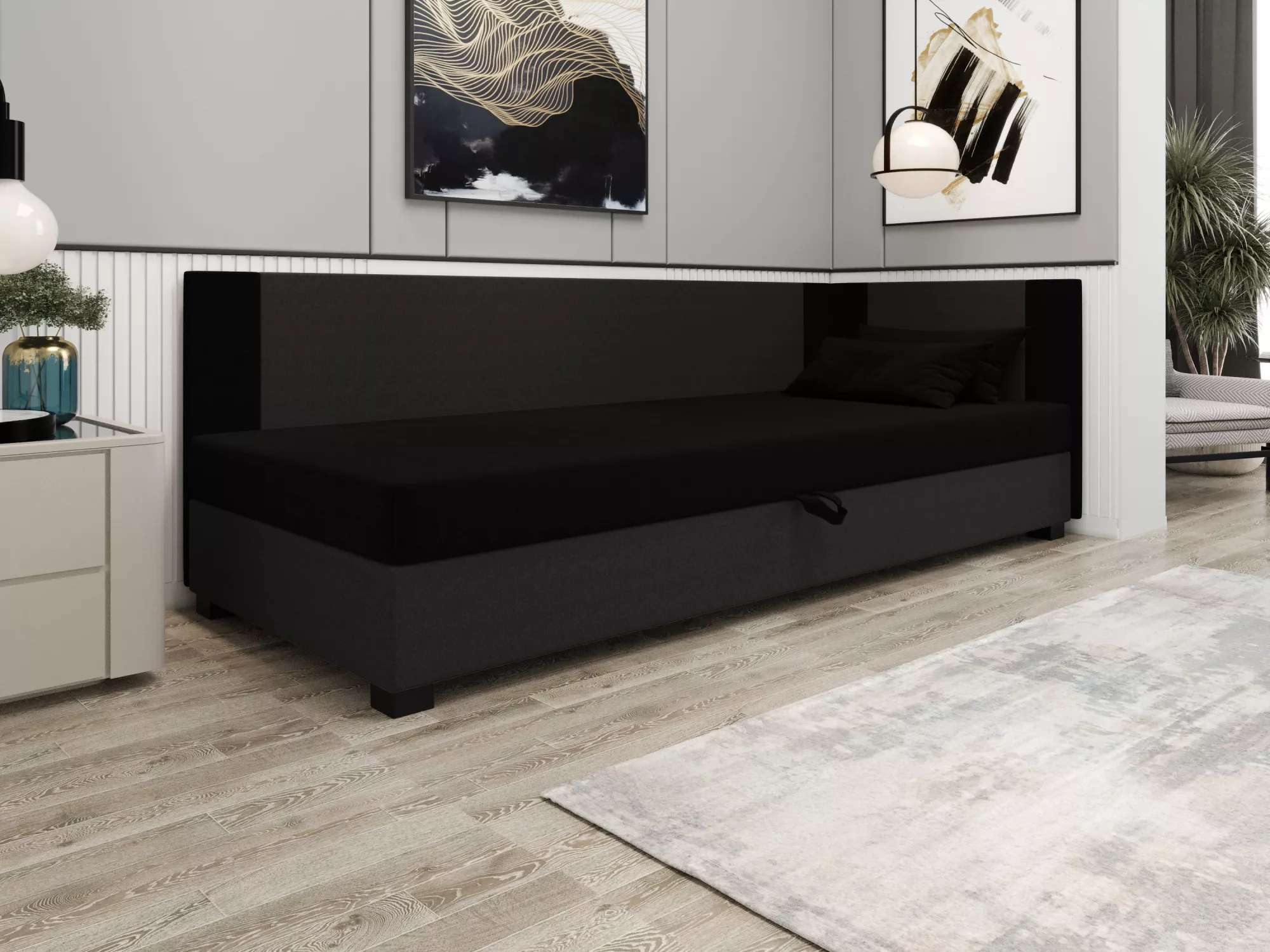 Čalúnená jednolôžková posteľ 110x195 ARIADNA PLUS 1 - čierna / šedá