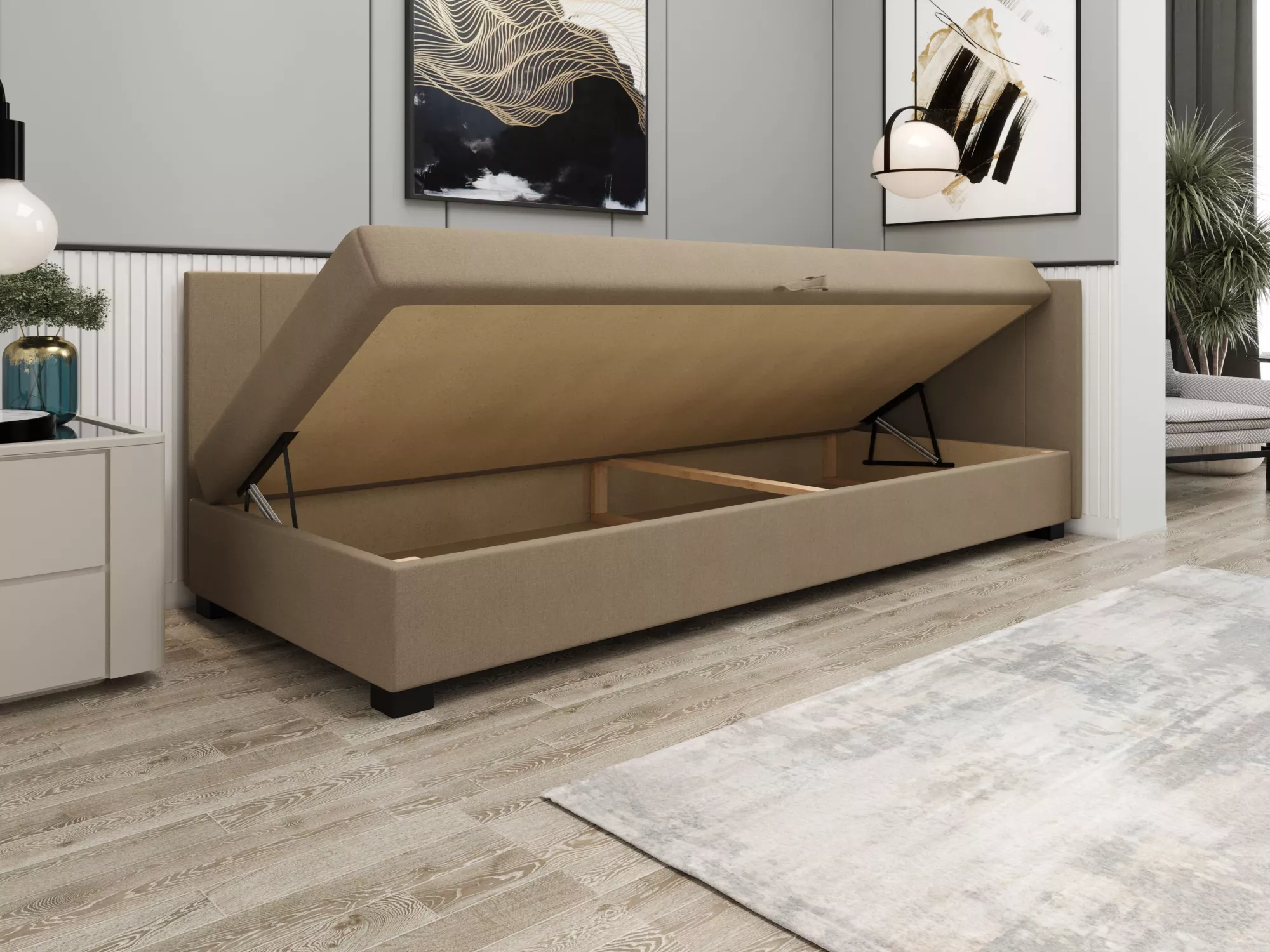 Čalúnená jednolôžková posteľ 80x195 ARIADNA PLUS 2 disponuje pohodlným matracom, ktorý spríjemní každú chvíľu odpočinku. Posteľ ponúka praktický úložný priestor na uloženie sezónneho oblečenia alebo posteľnej bielizne. Príjemná poťahová látka zvýši komfort používania.