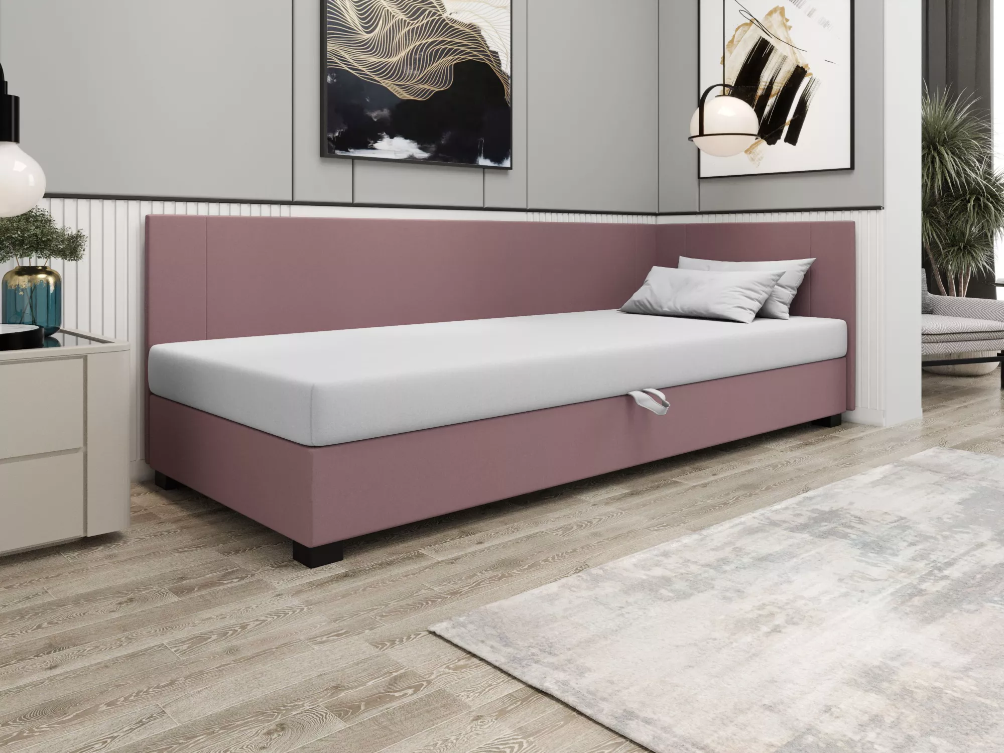 Čalúnená jednolôžková posteľ 100x195 ARIADNA PLUS 2 disponuje pohodlným matracom, ktorý spríjemní každú chvíľu odpočinku. Posteľ ponúka praktický úložný priestor na uloženie sezónneho oblečenia alebo posteľnej bielizne. Príjemná poťahová látka zvýši komfort používania.