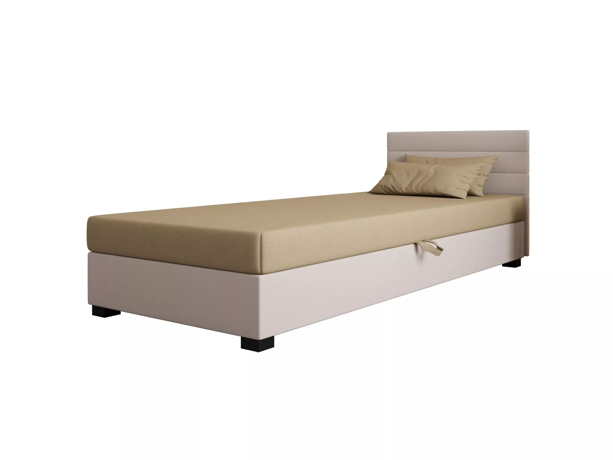 Čalúnená posteľ 80x195 KASANDRA 1 s úložným priestorom svojím jednoduchým minimalistickým dizajnom zapadne do každej študentskej izby. Vysoké čalúnené čelo zabráni poškriabaniu a zašpineniu steny.
