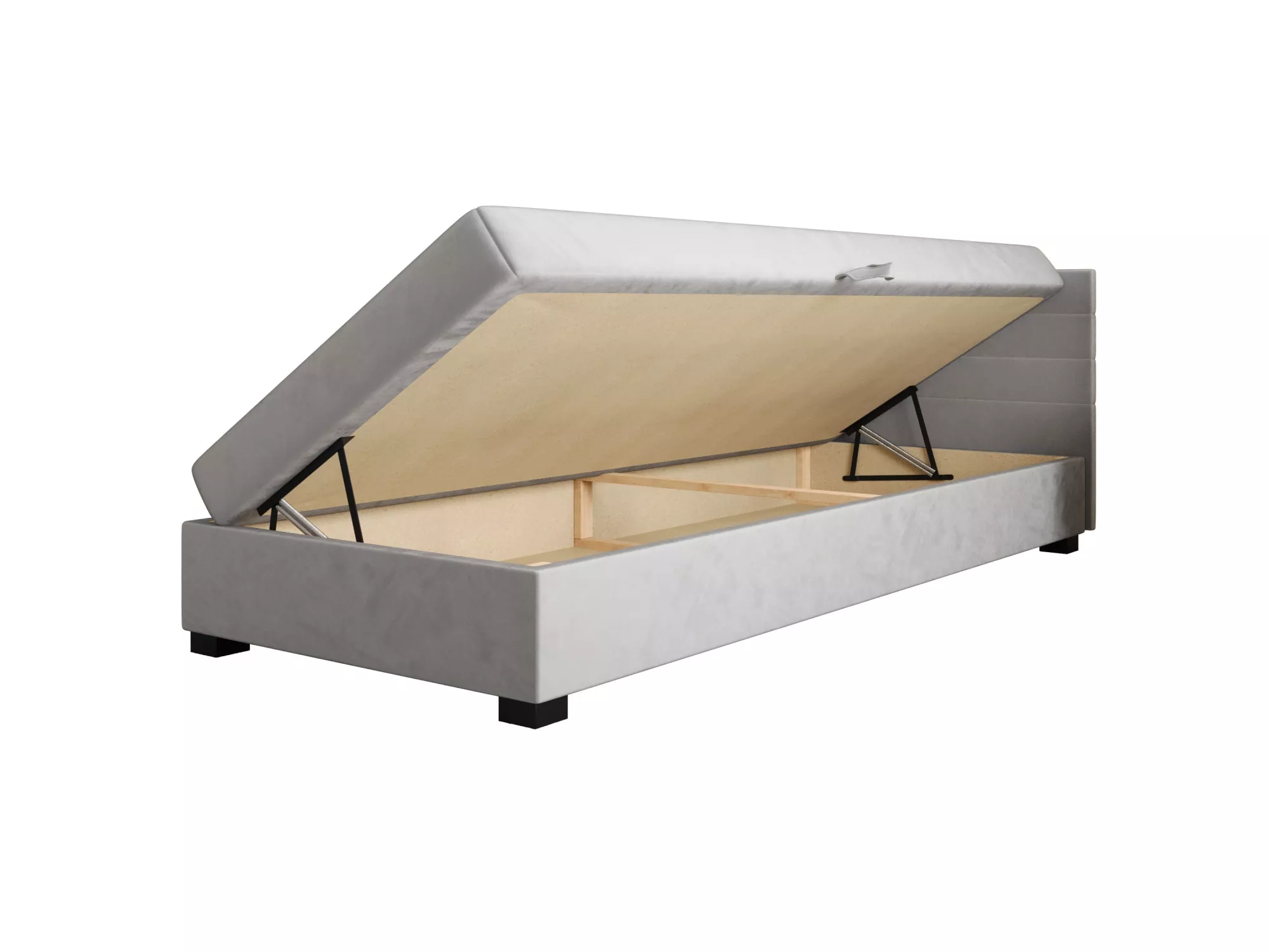 Čalúnená posteľ 100x195 KASANDRA 1 s úložným priestorom svojím jednoduchým minimalistickým dizajnom zapadne do každej študentskej izby. Vysoké čalúnené čelo zabráni poškriabaniu a zašpineniu steny.