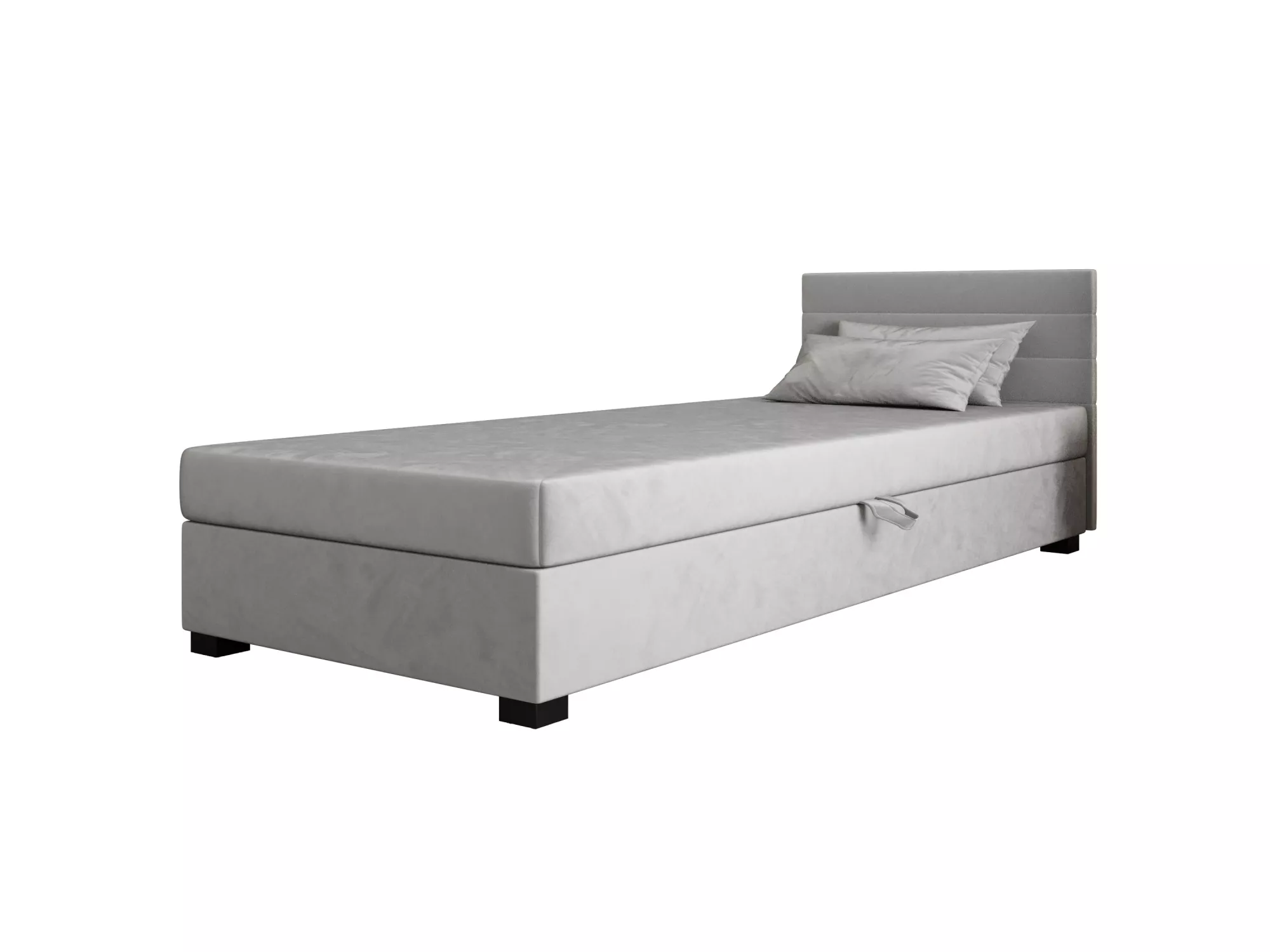 Čalúnená posteľ 120x195 KASANDRA 1 s úložným priestorom svojím jednoduchým minimalistickým dizajnom zapadne do každej študentskej izby. Vysoké čalúnené čelo zabráni poškriabaniu a zašpineniu steny.
