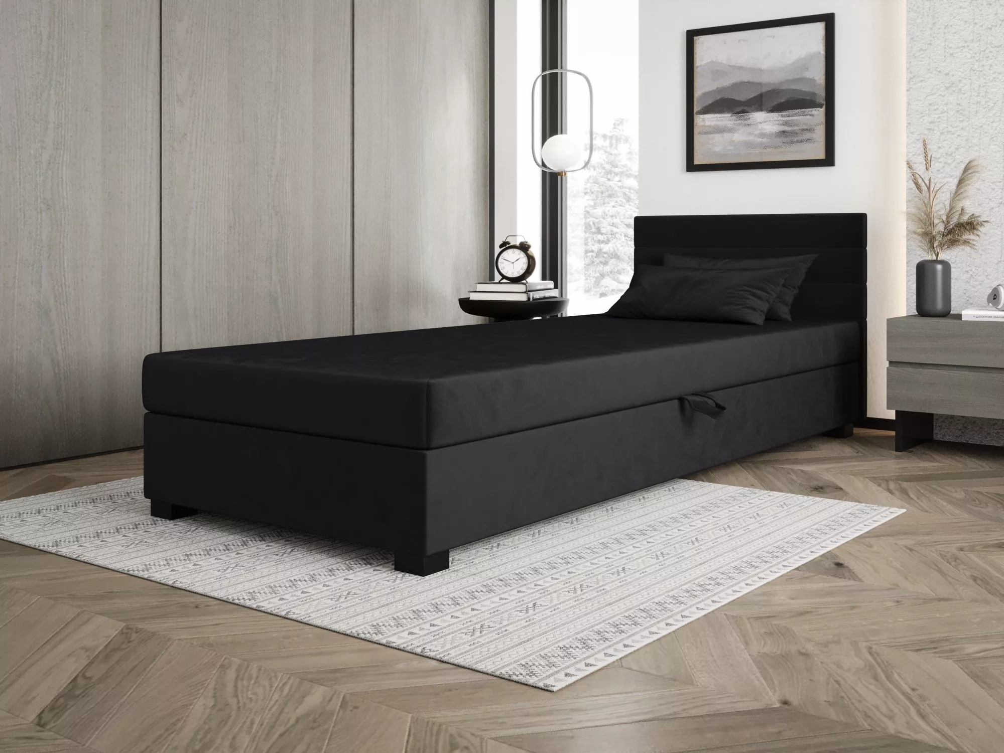 Čalúnená posteľ 90x195 KASANDRA 2 s úložným priestorom svojím jednoduchým minimalistickým dizajnom zapadne do každej študentskej izby. Vysoké čalúnené čelo zabráni poškriabaniu a zašpineniu steny.