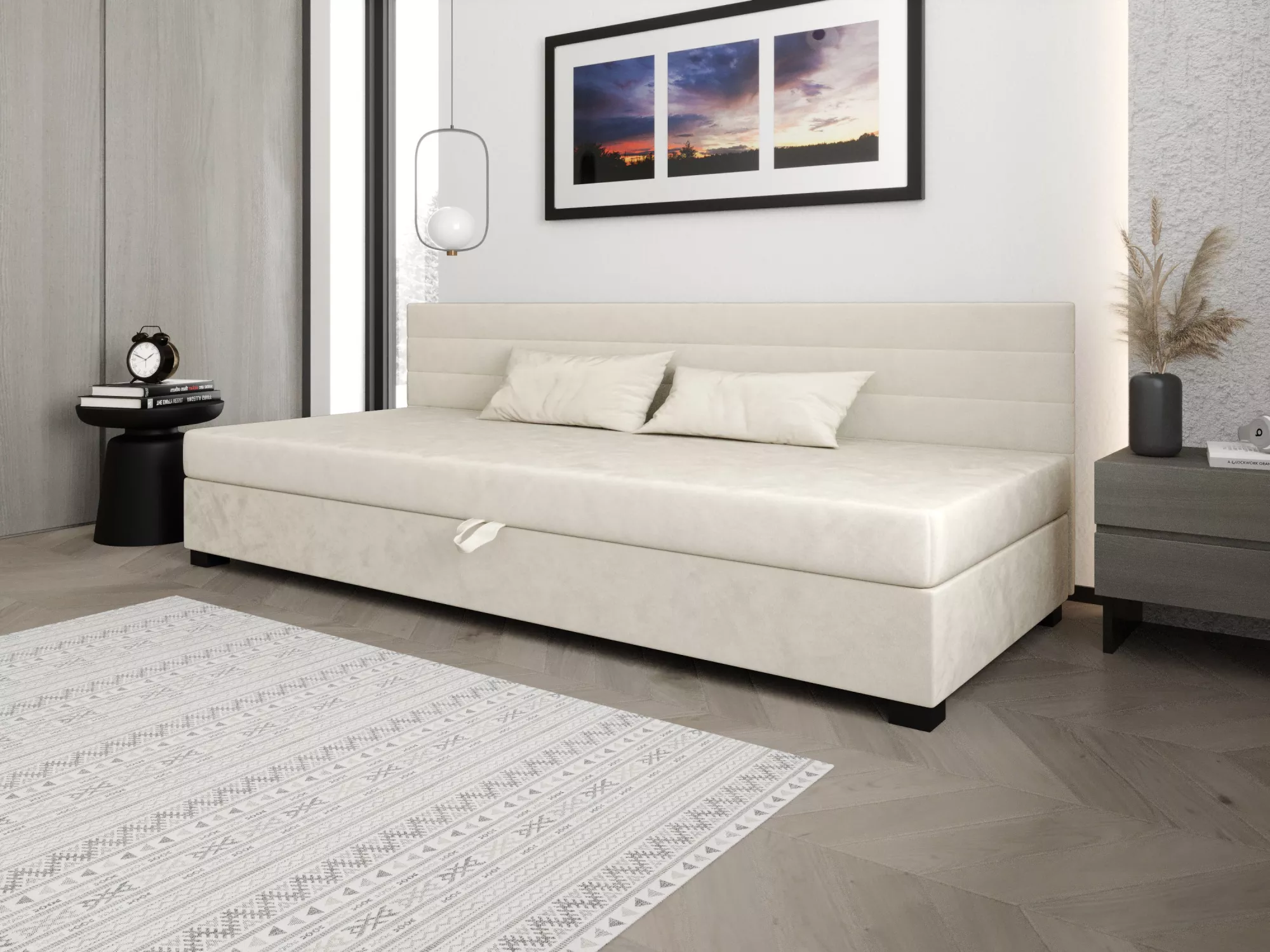 Čalúnená posteľ 100x195 KASANDRA BIZ 1 s úložným priestorom - ecru