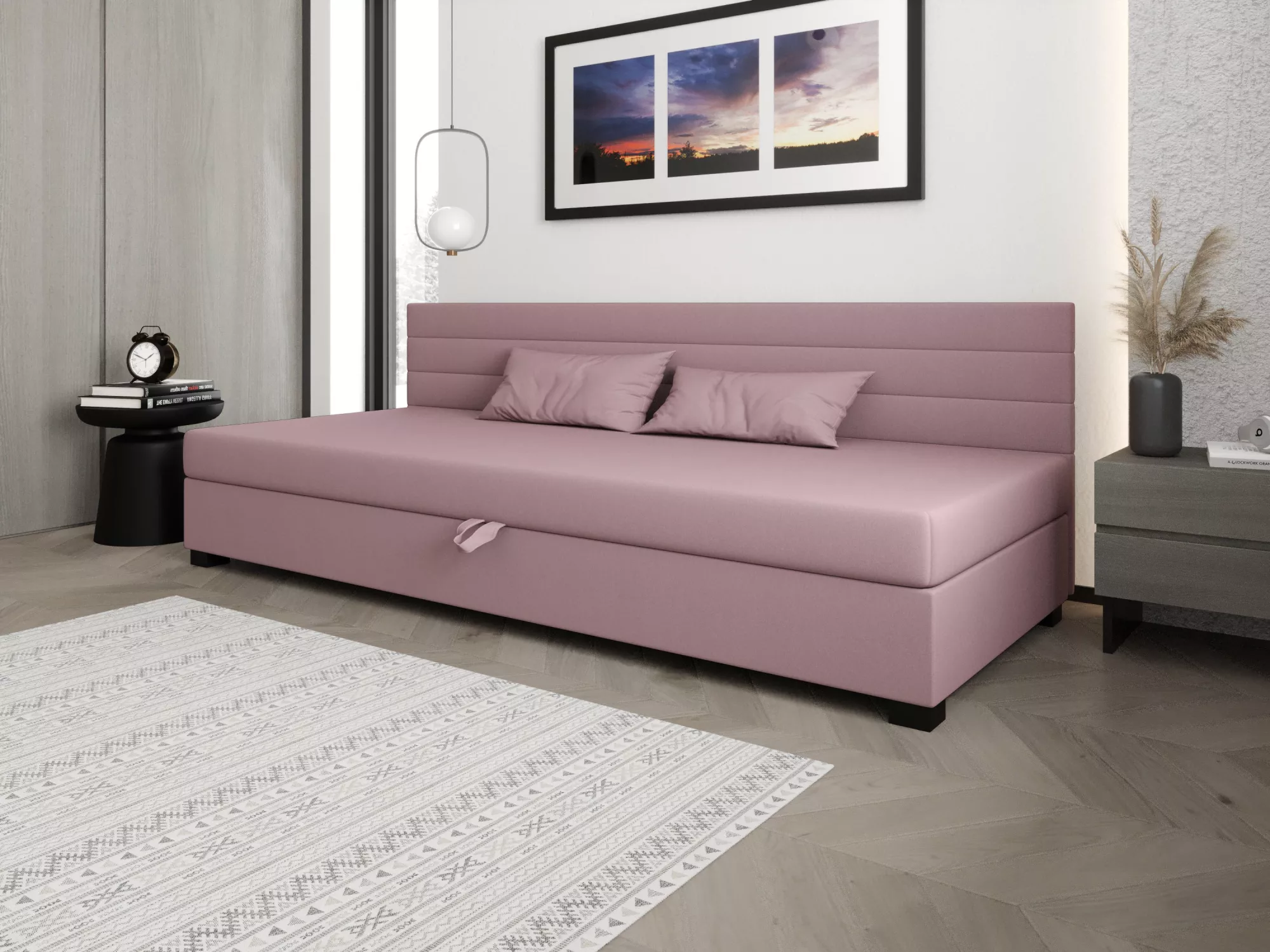 Čalúnená posteľ 100x195 KASANDRA BIZ 2 s úložným priestorom - ružová